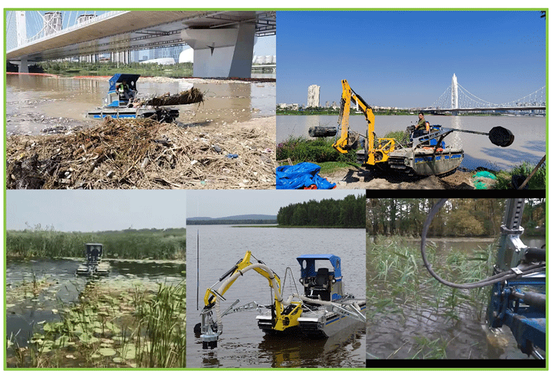 如:环保清淤、水草收割、垃圾打捞、疏通挖掘、保岸打桩、清理溢油、抢险救援等。